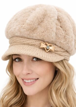 NICSY Women and Girl’s Winter Visor Cap Hat Beret for Women Knit Beanie Stylish Casual Beige Cap Winter Faux Fur Warm Pack 1