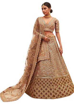 Divine Exim Women’s Slub Silk Lehenga Choli With Dupatta (BROWN_ZCDE7709_Unstitched)