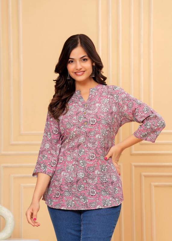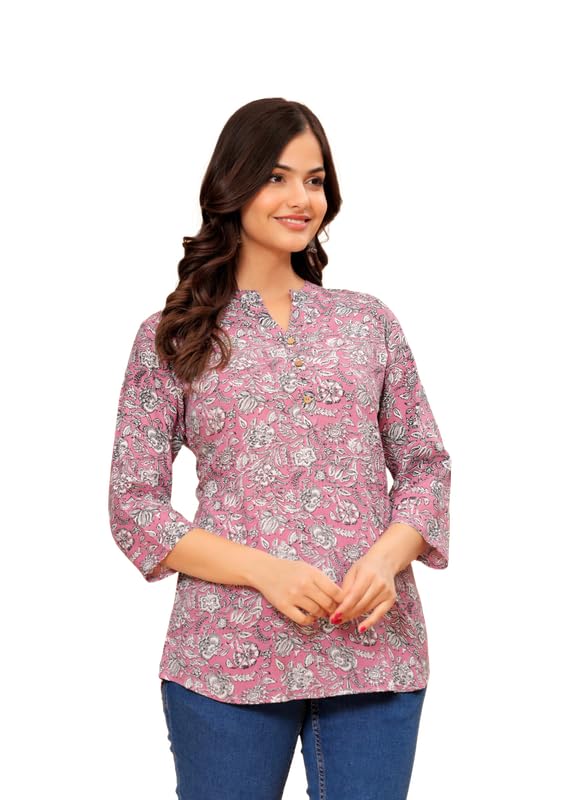 ANUSHIL Women’s Kurti & Tops| Stylish, Latest Cotton Kurti, Top Collection |Pink Flower Printed Design - styleefashion.com