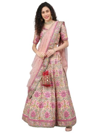 FUSIONIC Dazzling Pink Color Zari Resham and Dori Work Lehenga Choli For Women - styleefashion.com
