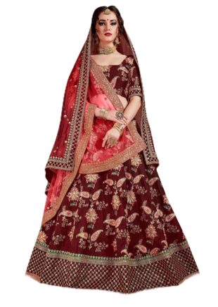 Add a glamorous touch to the wedding sangeet and reception by wearing this ensemble With stylish organza base, this pink lehenga choli screams all glory.While the back design of the blouse is all about sass.The dupatta is so flattering that you can’t help but adore it.