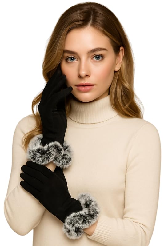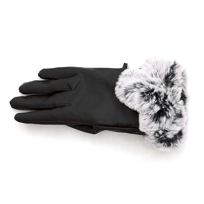 - The Faux Rabbit Fur design of the wrist is so special and fashion,make it different from other PU leather women gloves