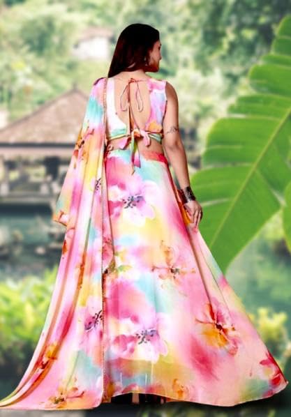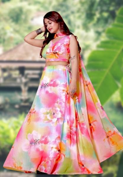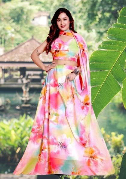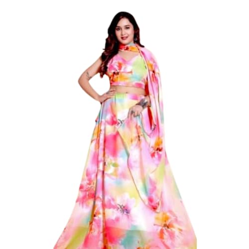 Mahi Collection Women’s Digital Printed organza Lehenga Choli | Embroidery Organza Semi-stitched Lehenga Choli With Dupatta | flower design (multi-flowers) - styleefashion.com