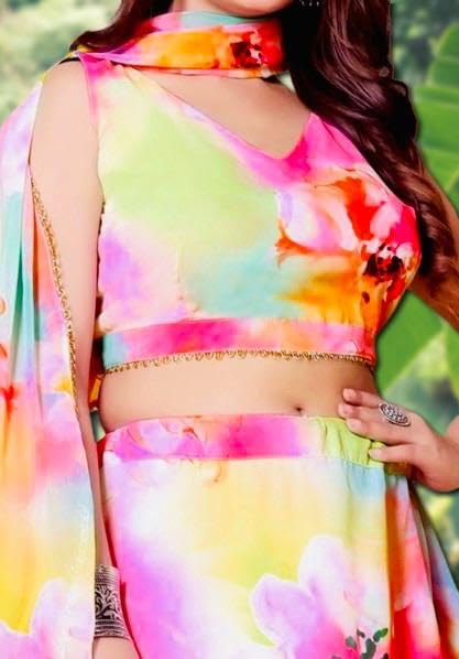 • Lehenga Work: Print and Sequins Embroidered; Blouse Work: Print and Sequins Embroidered; Dupatta Work: Print and Sequins Embroidered
