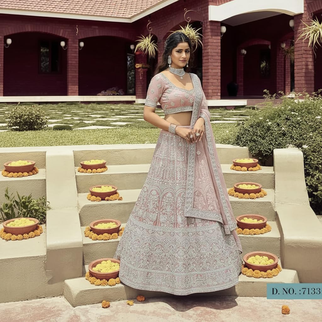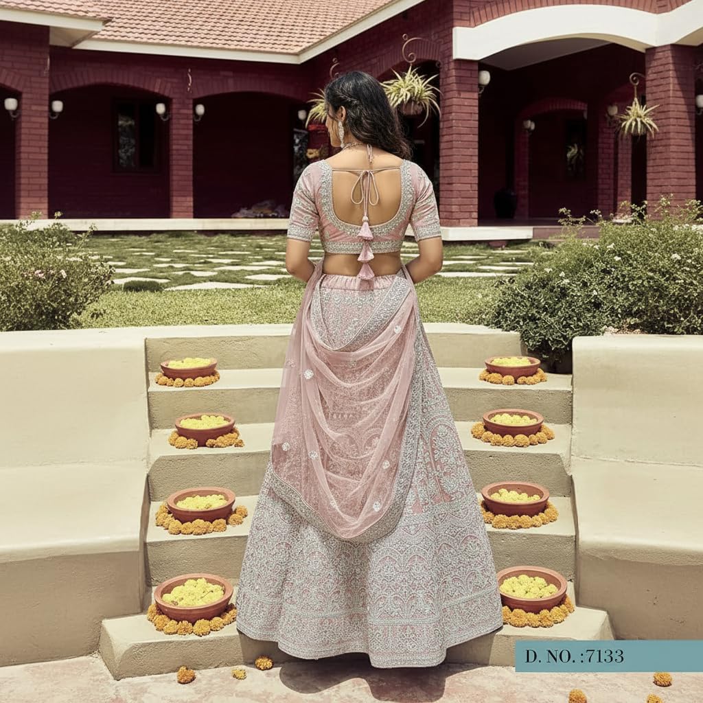 - Premium Organza Fabric – Made from high-quality organza material, this lehenga choli set offers a rich, lightweight feel with a graceful fall, giving a luxurious appearance while ensuring comfort during long festive events.