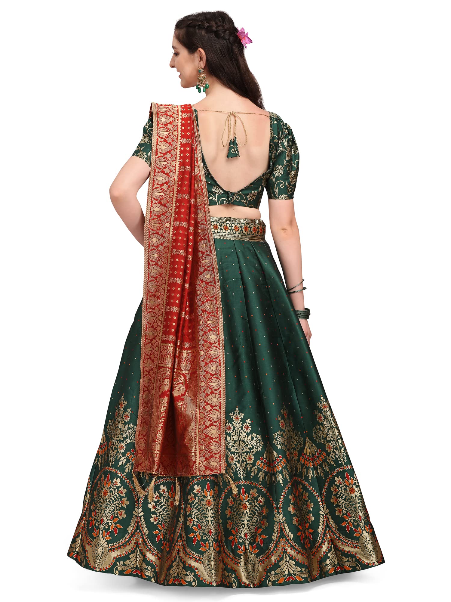 PURVAJA Women’s Jacquard Semi-Stitched Lehenga choli (Arambh-D-Green_Green_Free Size) - styleefashion.com