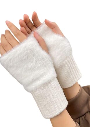 Richmen Gloves for Women Winter fingerless Hand Gloves for Girls Faux fur Fleece Mitten | Woolen Touch Screen Finger warm gloves for women Warmer (White, Freesize)