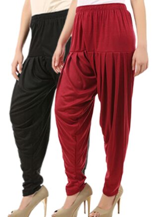 Buy That Trendz Women’s Relaxed Fit Cotton Viscose Dhoti Patiyala Salwar Harem Bottom Pants Black Maroon Large
