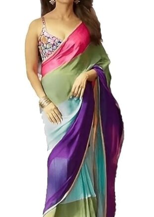Sidhidata Women’s Printed Pure Georgette Saree With Unstitched Blouse Piece (Rocky Aur Rani Ki Prem Kahani Saree) (Multicolour2)