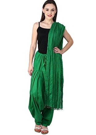 Yana Collection Women Free Size Full Cotton Plain Solid Patiala and Duptta Set (Dark Green Colour)