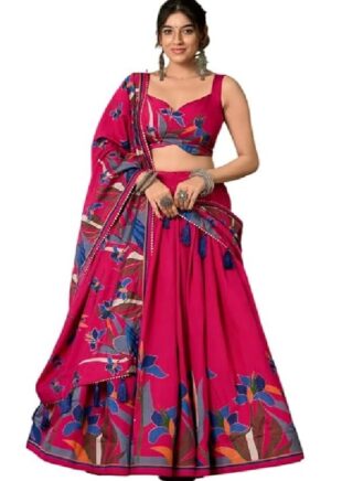 Women’s Collection Dolla Silk Lehenga Choli Print with Foil Work With Unstitched Blouse (Pink)