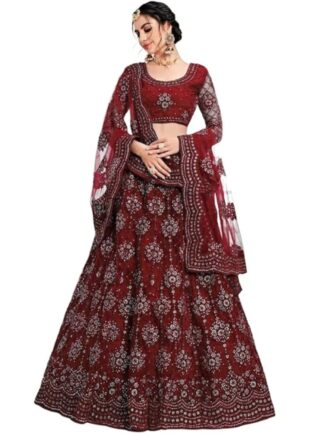 ZAALIMA FASHION WITH Z LOGO Amazon Brand-Women’s Net Chain Semi-Stitched Lehenga Choli And Dupatta Set (Free Size) (Maroon)